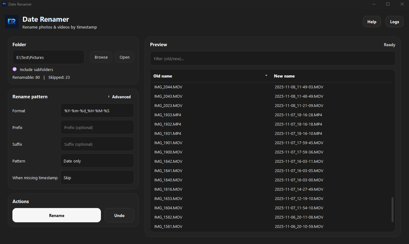 Date Renamer Toolkit exists because years of mixed media sources made reliable ordering nearly impossible. I needed a Windows app that sorted photos and videos by the actual capture time, with no guessing and no silent assumptions.